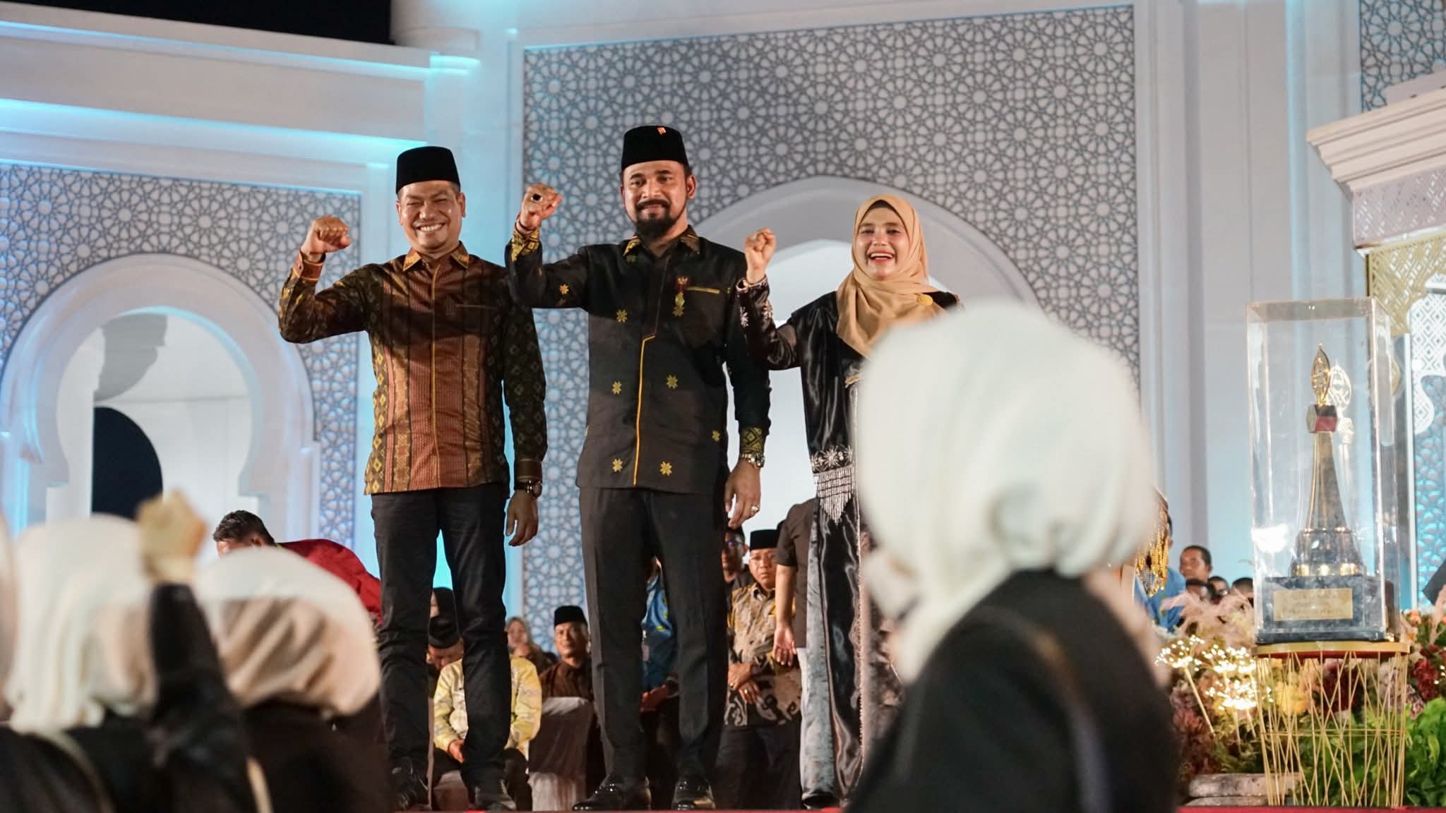 Pidie Jaya, Barometer99.com – Bupati Aceh Timur, Iskandar Usman Al-Farlaky, S.H.I., M.Si, bersama Ketua TP- PK Ny. Lismawani Al- Farlaky, S.Pd, M.Ag menghadiri langsung pembukaan Musabaqah Tilawatil Qur’an (MTQ) Aceh ke-XXXVI yang dipusatkan di arena utama Kabupaten Pidie Jaya, Sabtu malam, 1 November 2025.