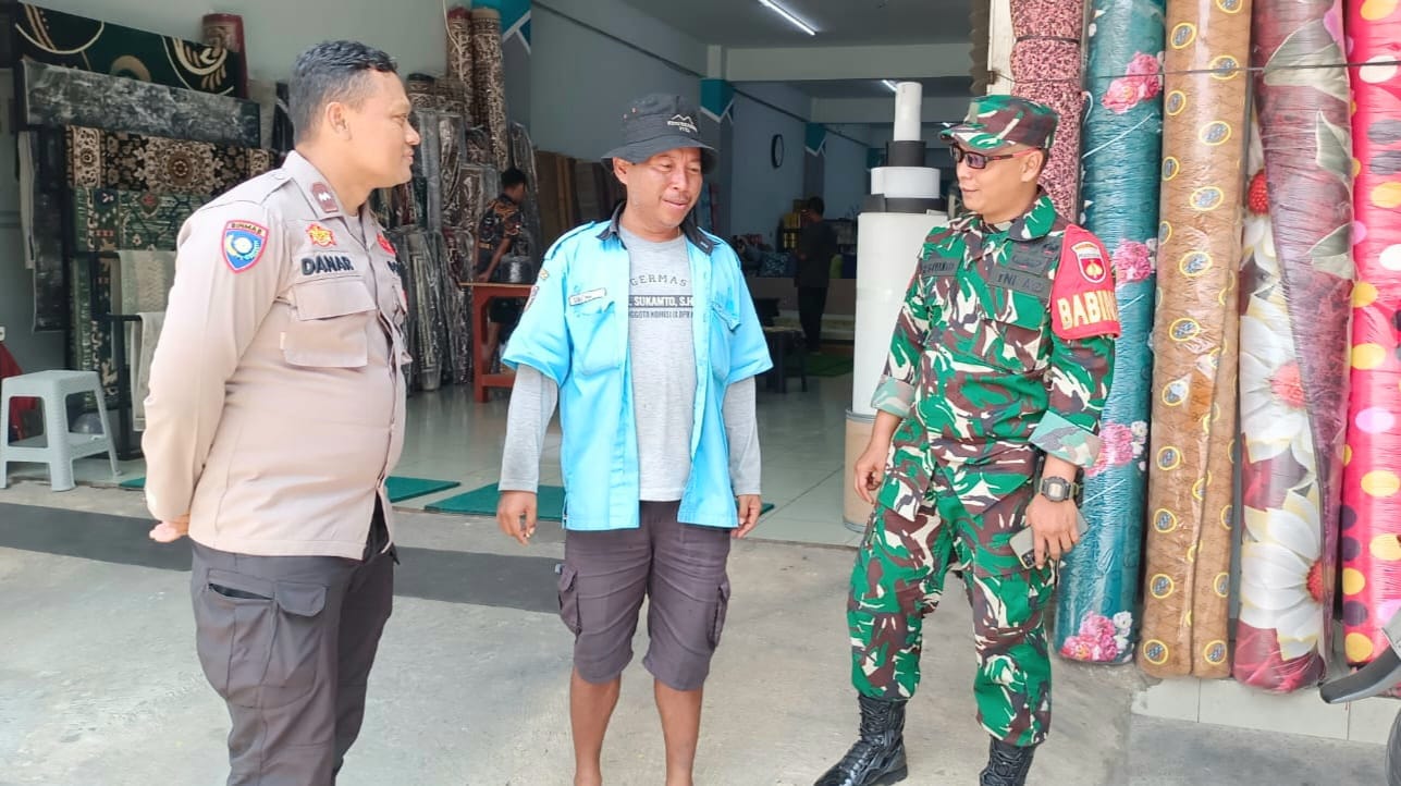Surakarta, Barometer99.com – Babinsa Kratonan Koramil 03/Serengan Kodim 0735/Surakarta Serka Aris Setyo Utomo dan Kopka Resbiyanto Bersama Bhabikamtibmas Aipda Danar Efendi Nasution S.H pukul 08.30 wib melaksanakan Kegiatan Komunikasi Sosial dengan Bapak Abdul Sebagai Juru Parkir di Toko Makmur Veteran (Toko Karpet Solo) Jl. Veteran No.162 Kratonan Serengan Kota Surakarta. Minggu (2 November 2025).