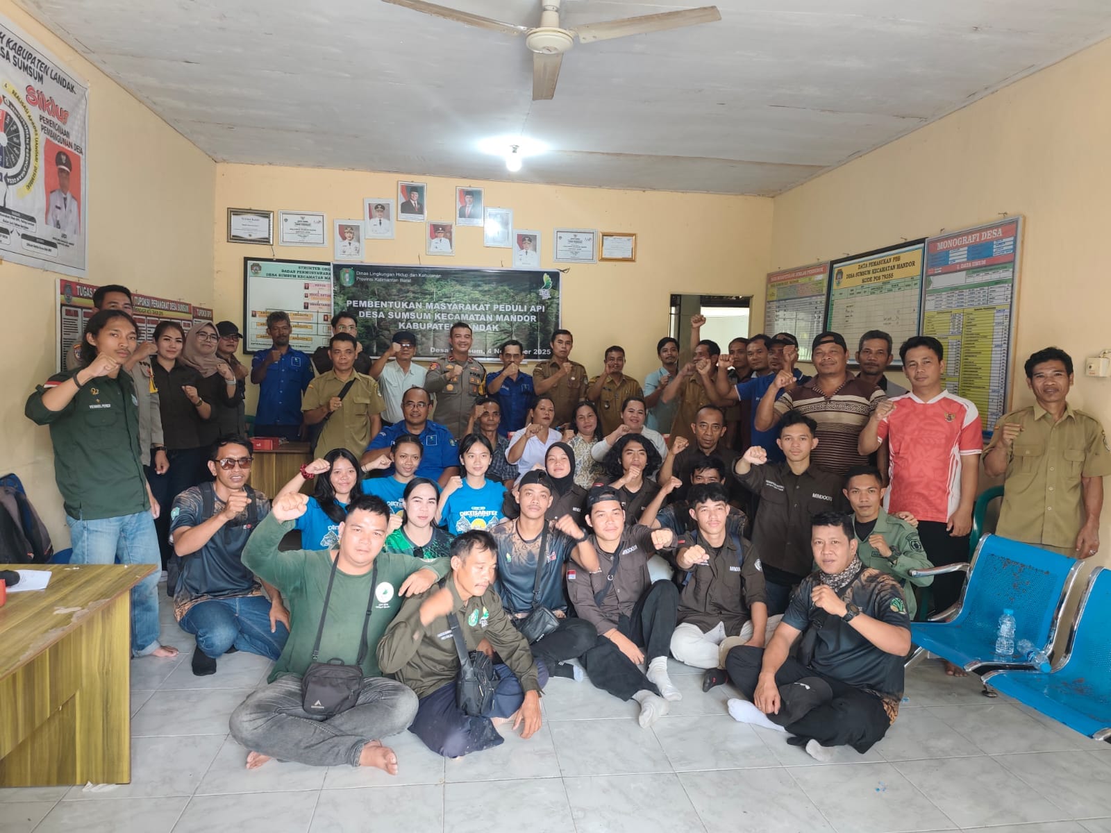 Polsek Mandor~ Polres Landak ~ Polda Kalbar, Barometer99.com ~ Dalam upaya memperkuat pencegahan kebakaran hutan dan lahan (Karhutla), Dinas Lingkungan Hidup dan Kehutanan Provinsi Kalimantan Barat menggelar kegiatan Pembentukan Masyarakat Peduli Api (MPA) di Aula Kantor Desa Sumsum, Kecamatan Mandor, Kabupaten Landak, ” Selasa (4/11/2025)