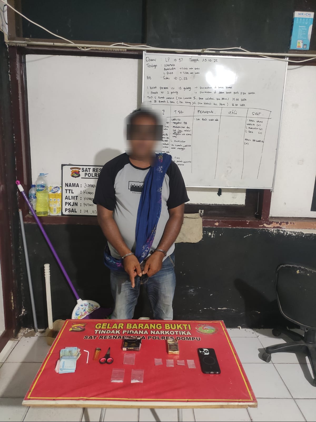 Kendati demkian dalam penggeledahan yang disaksikan dua warga setempat, petugas menemukan barang bukti sabu seberat bruto 2,03 gram (netto 1,27 gram), uang tunai Rp1.983.000, serta peralatan yang diduga digunakan untuk mengemas narkotika. Kasat Resnarkoba menegaskan komitmen pihaknya untuk terus memberantas segala bentuk penyalahgunaan narkotika di wilayah hukum Polres Dompu.