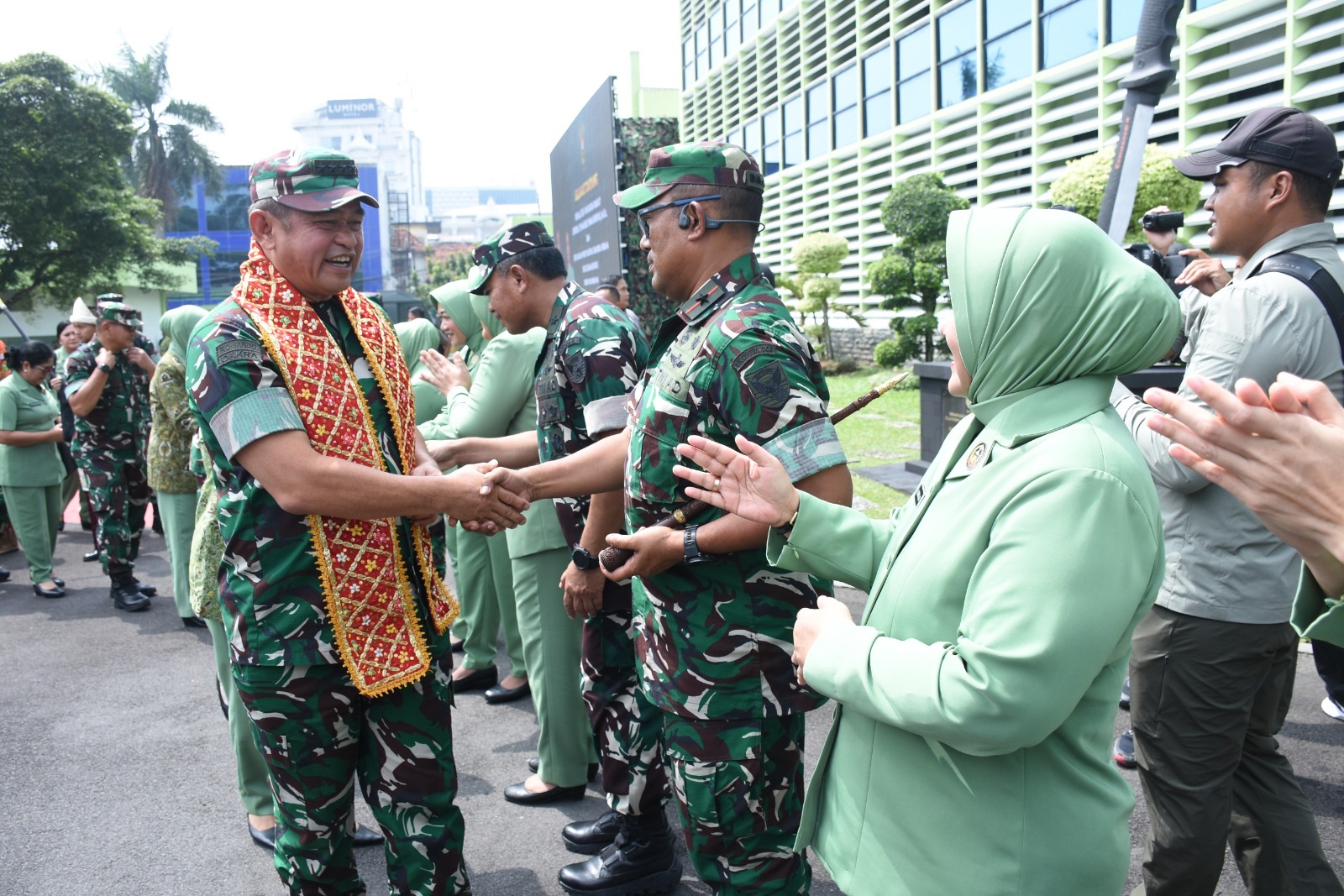Palembang, Barometer 99.com – Danrem 044/Gapo Brigjen TNI Adri Koesdyanto bersama Ketua Persit KCK Koorcab Rem 044 PD II, Ibu Veranita Adri, turut menyambut kehadiran Kepala Staf Angkatan Darat (Kasad) Jenderal TNI Maruli Simanjuntak saat melaksanakan kunjungan kerjanya di Wilayah Kodam II/Swj, Rabu (5/11/2025).