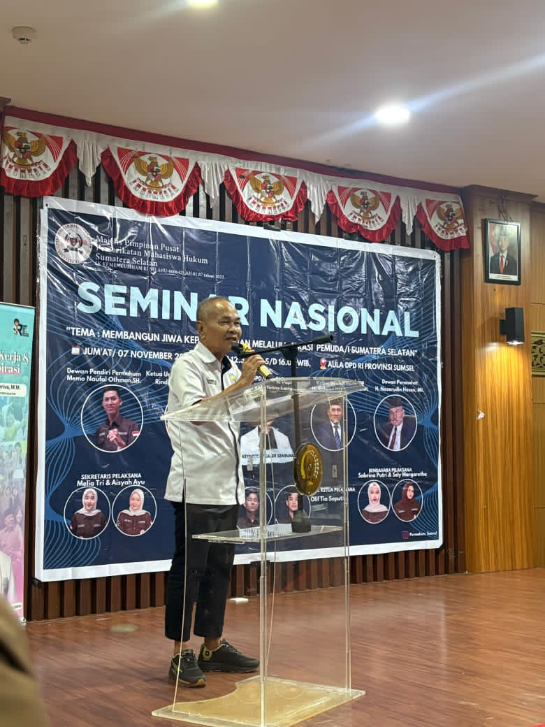 Palembang, Barometer 99.com – Dalam rangka memperingati Hari Pahlawan Nasional, Perserikatan Mahasiswa Hukum Sumatera Selatan (Permahum Sumsel) menggelar Seminar Nasional bertema “Membangun Jiwa Kepahlawanan Melalui Literasi Pemuda/i Sumatera Selatan” di Aula DPD RI Provinsi Sumatera Selatan, Jumat (07/11).