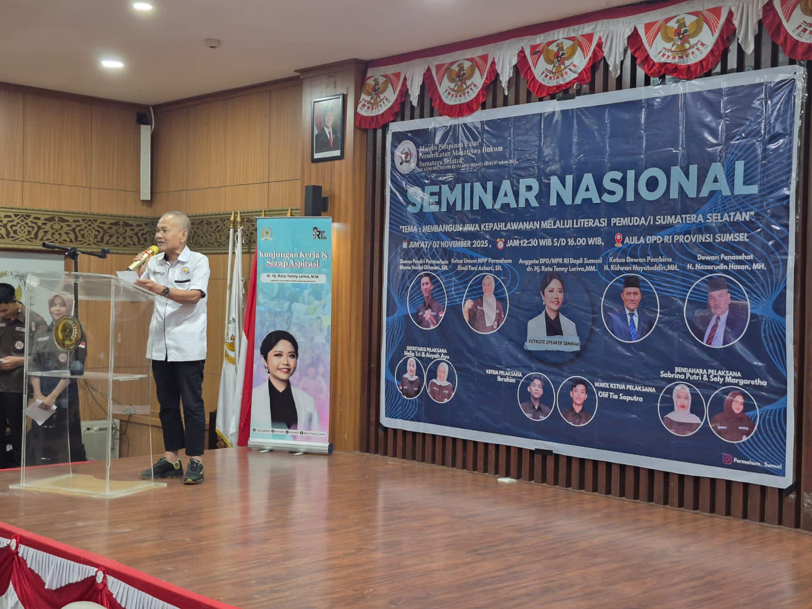 Palembang, Barometer 99.com – Dalam rangka memperingati Hari Pahlawan Nasional, Perserikatan Mahasiswa Hukum Sumatera Selatan (Permahum Sumsel) menggelar Seminar Nasional bertema “Membangun Jiwa Kepahlawanan Melalui Literasi Pemuda/i Sumatera Selatan” di Aula DPD RI Provinsi Sumatera Selatan, Jumat (07/11).
