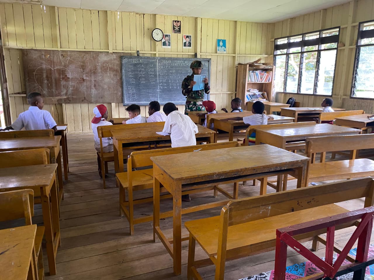 Mamberamo Tengah, Barometer99.com – -Dalam rangka mencerdaskan generasi muda di wilayah perbatasan, personel Pos Eragayam Satgas Pamtas RI-PNG Kewilayahan Yonif 521/DY melaksanakan kegiatan mengajar di SD Inpres Eragayam, Kampung Wurigelebur Distrik Eragayam Kabupaten Mamberamo Tengah. (8/11/2025).