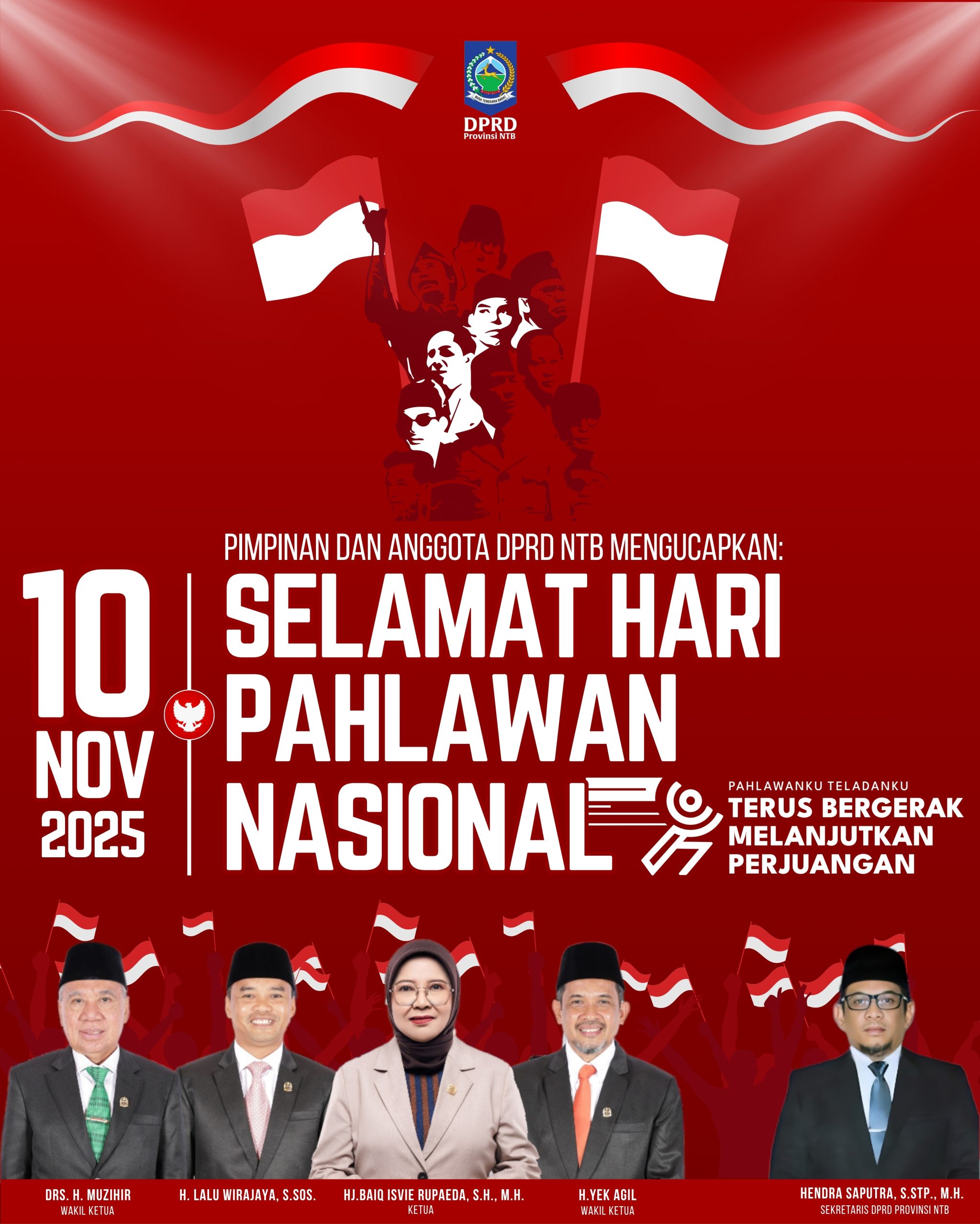 Barometer99.com, Barometer99.com- Pimpinan dan Anggota DPRD NTB Mengucapkan Selamat Hari Pahlawan Nasional 10 November 2025.