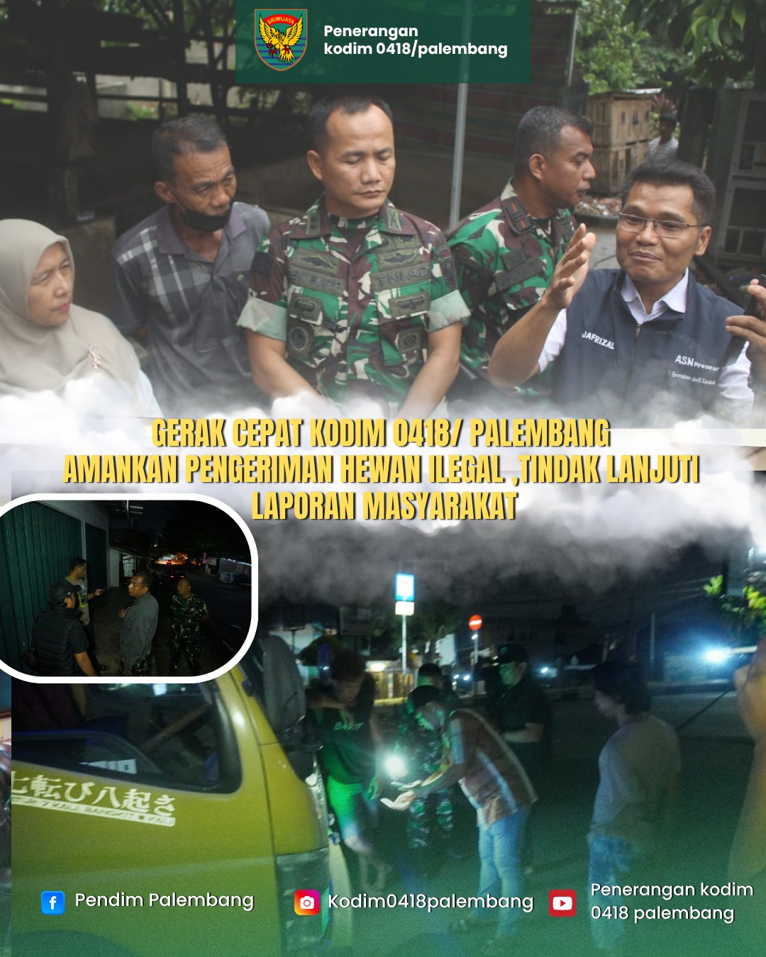 Menindaklanjuti temuan tersebut, Komandan Kodim 0418/Palembang Letkol Arh Erik Novianto, S.Sos., yang diwakili oleh Kepala Staf Kodim Letkol Inf Dery Septriandi, S.T., M.M., M.Han. segera berkoordinasi dengan instansi terkait, yakni Dinas Ketahanan Pangan dan Peternakan Provinsi Sumatera Selatan (Sumsel). Kasdim Letkol Inf Dery mengonfirmasi bahwa kegiatan ini merupakan bagian dari patroli rutin pengawasan wilayah sekaligus memverifikasi kebenaran aduan dari masyarakat.