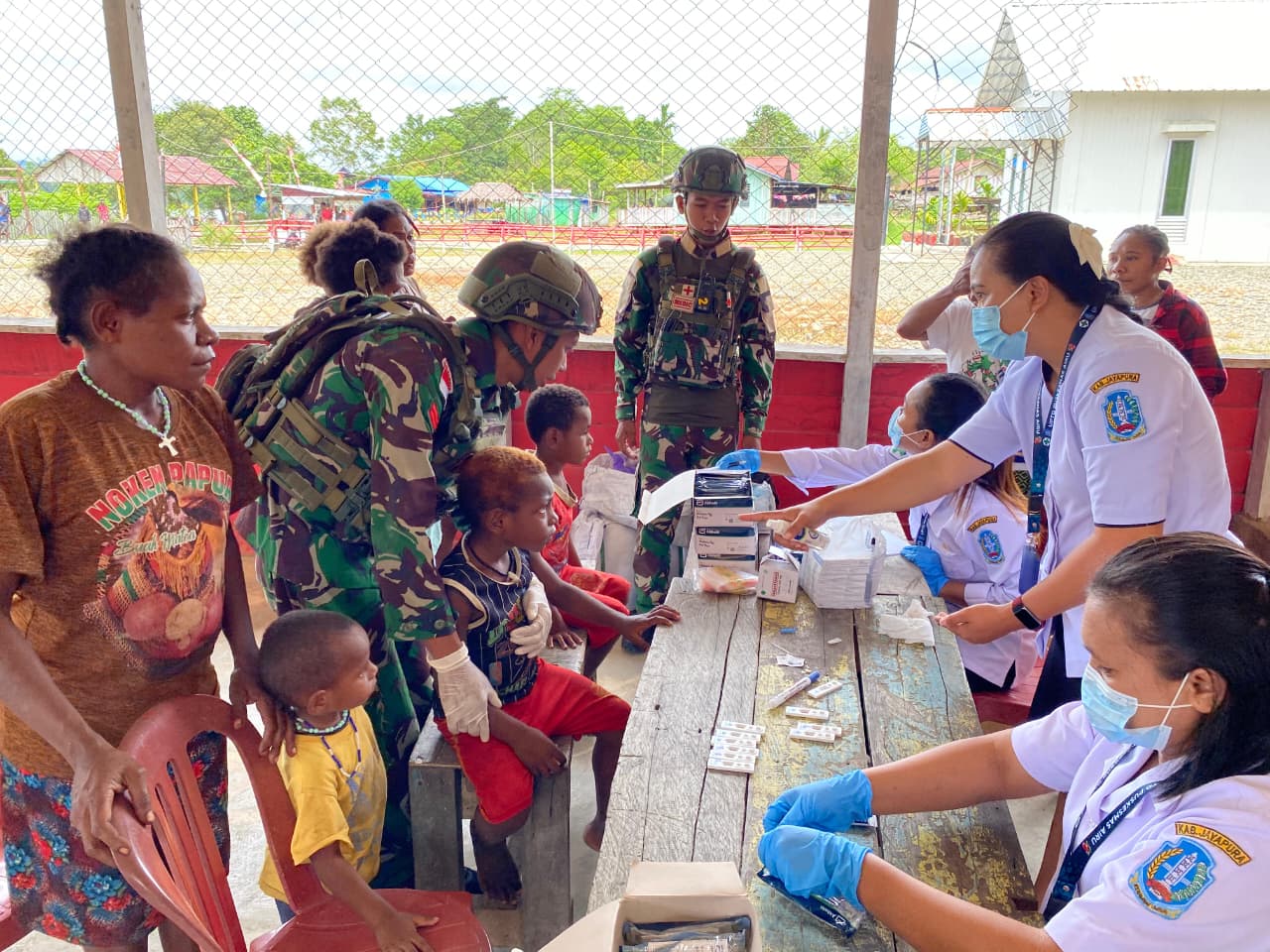 Satgas Yonif 521/DY Pos Muaranawa menjalin sinergi erat dengan Puskesmas Distrik Airu di Kabupaten Jayapura, (13/11/2025). Melalui pelayanan kesehatan terpadu dan kegiatan penyuluhan kesehatan bagi masyarakat setempat. Kolaborasi ini bertujuan untuk meningkatkan kualitas kesehatan warga di pedalaman Papua yang memiliki keterbatasan akses medis.
