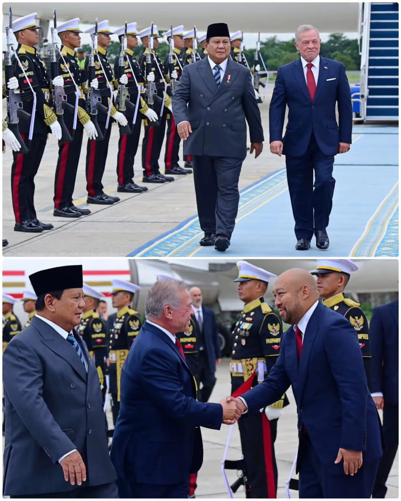 Setelah upacara penyambutan kenegaraan, kedua pemimpin melakukan pertemuan bilateral bersama delegasi masing-masing. Kepala Negara menegaskan bahwa hubungan Indonesia dan Yordania telah terjalin erat selama lebih dari tujuh dekade. Tidak hanya hubungan diplomatik, Presiden Prabowo juga mengenang kedekatan personal yang telah terjalin dengan keluarga Kerajaan Yordania, terutama mendiang Raja Hussein.