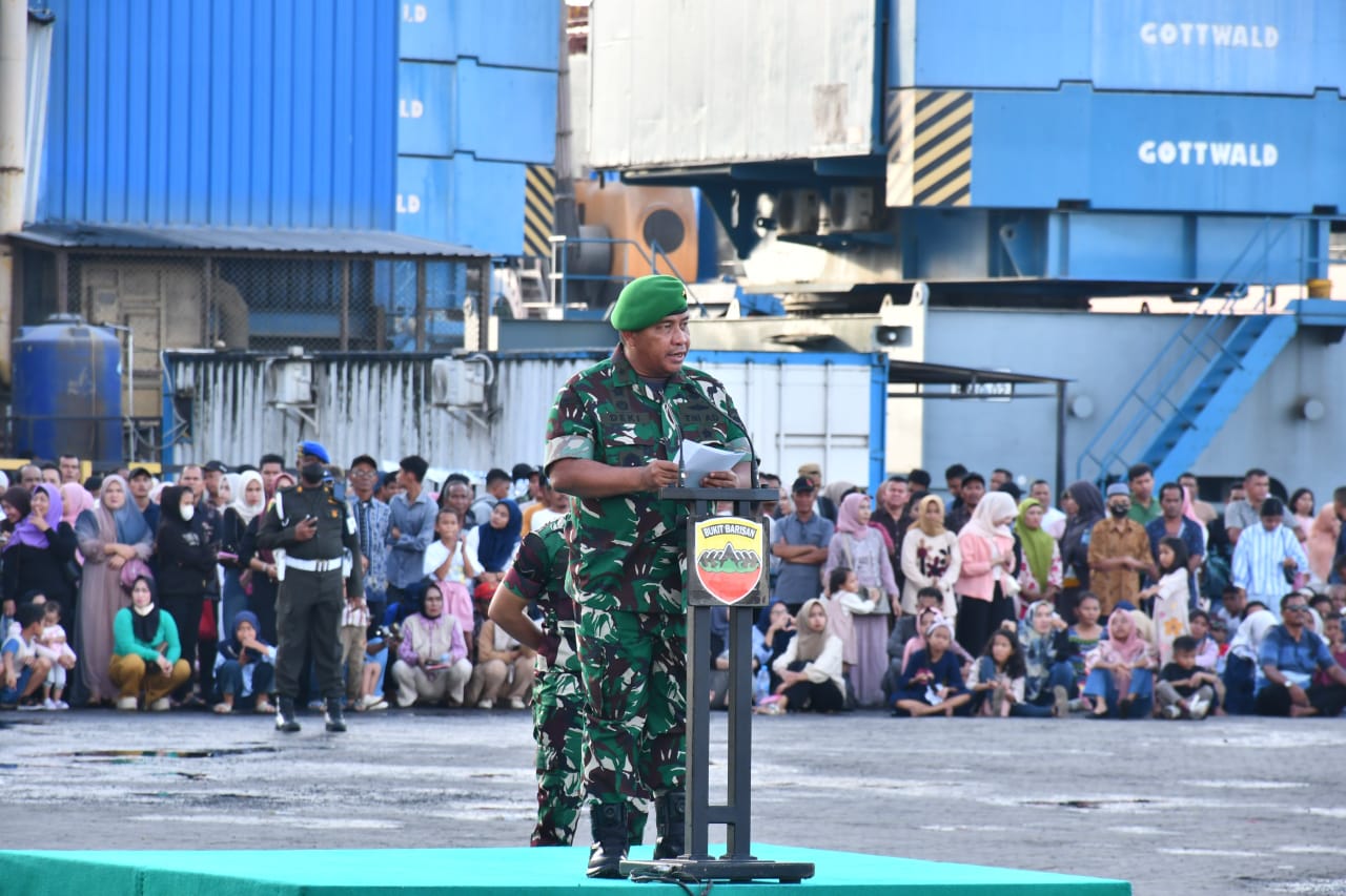 Belawan, Barometer99.com — Kasdam I/Bukit Barisan Brigjen TNI Deki Santoso Pattinaya memimpin upacara penyambutan personel setingkat Brigif dan Yon TP tahap II jajaran Kodam I/BB di Dermaga Ujung 200 Belawan, Sabtu (15/11/2025). Sebanyak 2.050 bintara dan tamtama remaja langsung mengikuti rangkaian kegiatan upacara setibanya di wilayah Kodam I/BB.