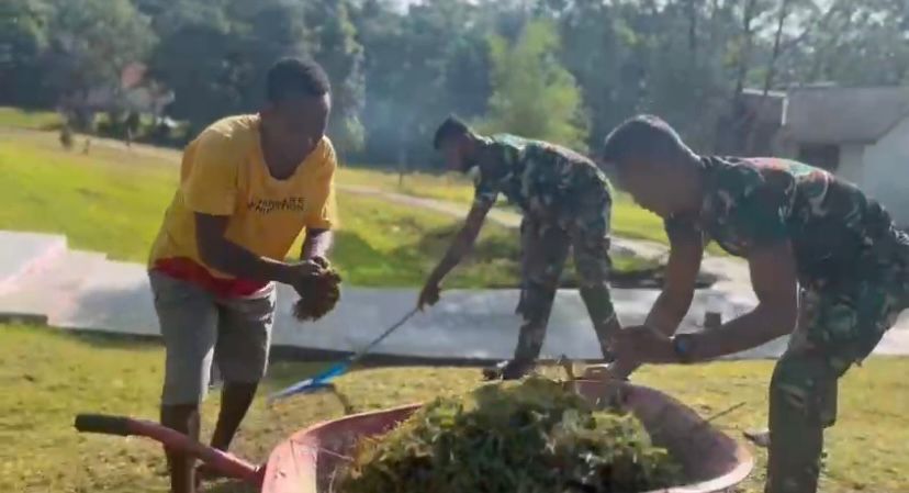 Afkrem, Barometer99.com – Satgas Pamtas RI-PNG Kewilayahan Yonif 763/SBA Pos Afkrem bersama masyarakat melaksanakan kegiatan pembinaan peritorial dengan membersihkan gereja Kampung Afkrem, Kabupaten Maybrat, Provinsi Papua Barat Daya. (18/11/2025).