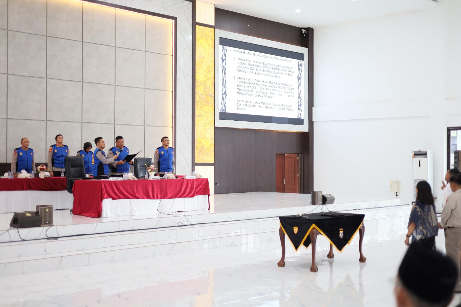 Kegiatan Penandatanganan Pakta Integritas dan Pengambilan Sumpah yang diikuti oleh sebanyak 537 calon siswa (casis) terverifikasi turut dihadiri Pejabat Utama Polda Maluku, panitia, pengawas, peserta, dan orang tua/wali seleksi.