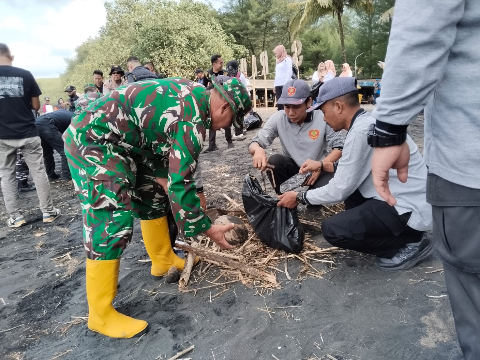 Blitar, Barometer 99.com – Dalam rangka mendukung pariwisata lokal serta menjaga kelestarian lingkungan dan meningkatkan kesadaran masyarakat terhadap pentingnya kebersihan kawasan wisata, Anggota Koramil 0808/18 Panggungrejo Kodim 0808/Blitar bersama forkopimca Panggungrejo Kabupaten Blitar melaksanakan kegiatan pembersihan Pantai Serang pada Jumat (21/11/2025).