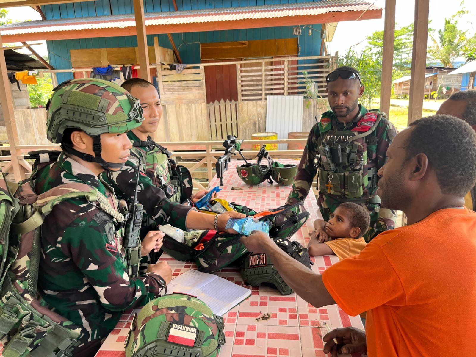 Tambrauw, Papua Barat Daya, Barometer99.com — Satgas Pamtas RI-PNG Kewilayahan Yonif 763/SBA bersama Puskesmas Tambrauw melaksanakan kegiatan pemeriksaan kesehatan gratis bagi masyarakat Kabupaten Tambrauw yang dipusatkan di Gedung Bupati Tambrauw, pada hari ini. Kegiatan ini merupakan wujud kepedulian TNI bersama tenaga kesehatan setempat dalam meningkatkan kualitas kesehatan masyarakat. (22/11/2025).