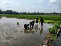 Melihat para petani yang sudah nyemplung dilahan persawahan, tanpa mengulur waktu anggota Koramil yang dipimpin Serka Supriyanto segera bergegas turun menuju kerumunan sejumlah petani yang sedang melakukan kegiatan tanam padi.