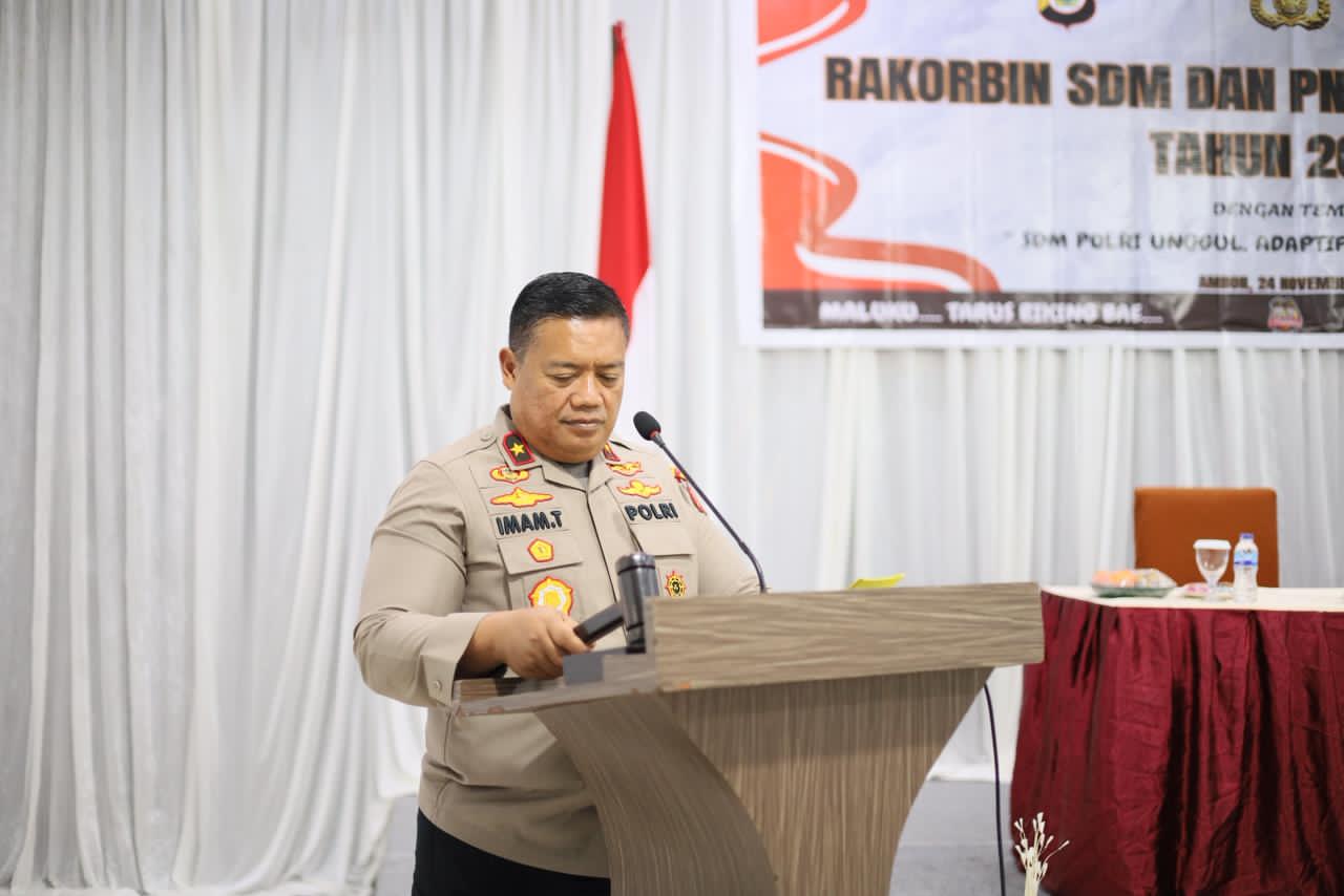 Polda Maluku, Barometer 99.com – Wakil Kepala Kepolisian Daerah Maluku, Brigjen Pol Imam Thobroni, S.I.K., M.H membuka Rapat Koordinasi Pembinaan Sumber Daya Manusia (Rakorbin SDM) dan Pegawai Negeri Sipil (PNS) Polda Maluku Tahun Anggaran 2025.