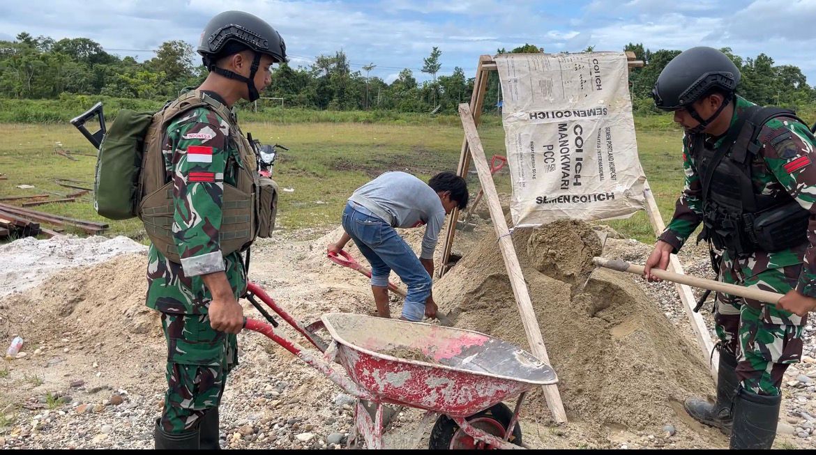 Teluk Bintuni, Barometer99.com – Di jantung pedalaman Distrik Meyado, Kabupaten Teluk Bintuni, Papua Barat, suasana pagi yang Hangat kini disemarakkan oleh gelak tawa dan semangat belajar anak-anak. Di SDN Impres Stenkol III, kehadiran seragam loreng bukan lagi sekadar penanda penjagaan kedaulatan, melainkan simbol harapan baru. Pos Kotis Satgas Pamtas Kewilayahan RI-PNG Yonif 410/Alugoro Bersama Masyakat membantu membangun fasilitas Sekolah bertepatan di Hari Guru Nasional , Selasa (25/11/2025).