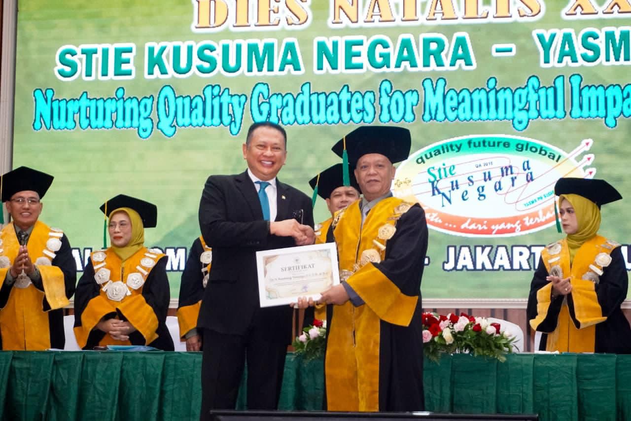 “Lulusan sarjana harus menjadi agen perubahan yang mampu menggerakkan ekonomi rakyat, menciptakan pekerjaan dan menghadirkan teknologi yang menyelesaikan persoalan bangsa. Gelar akademik pada akhirnya harus menjadi tanggung jawab terhadap masa depan Indonesia, bukan sekadar formalitas administratif,” ujar Bamsoet saat memberikan orasi ilmiah pada Wisuda Program Pascasarjana dan Sarjana Sekolah Tinggi Ilmu Ekonomi (STIE) Kusuma Negara di Jakarta, Rabu (26/11/25).