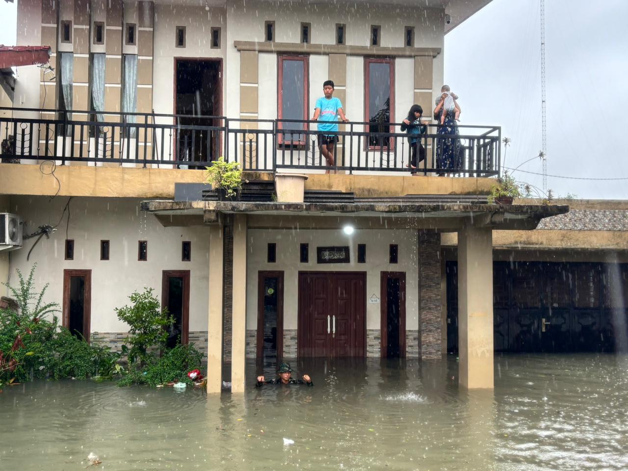 Setibanya di lokasi personel melakukan penyisiran terhadap 15 rumah terdampak. Dalam proses tersebut, satu keluarga yang terdiri dari empat orang dewasa dan satu bayi ditemukan terjebak di dalam rumah akibat tingginya genangan air. Seluruh anggota keluarga berhasil dievakuasi ke rumah warga yang aman dari banjir.