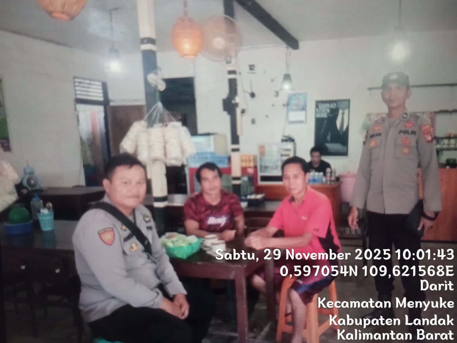 Patroli pada siang hari tersebut dilaksanakan secara rutin oleh Aipda Yusliadi dan Briptu Andika Radyabagas Kara. dengan sasaran yaitu sekitaran warung warga, Pemukiman Penduduk, Perbankkan dan ke tempat Kantor Pemerintahan yang ada di wilayah Desa Darit Kecamatan Menyuke Kabupaten Landak, Sabtu (29/11/2025) Siang.