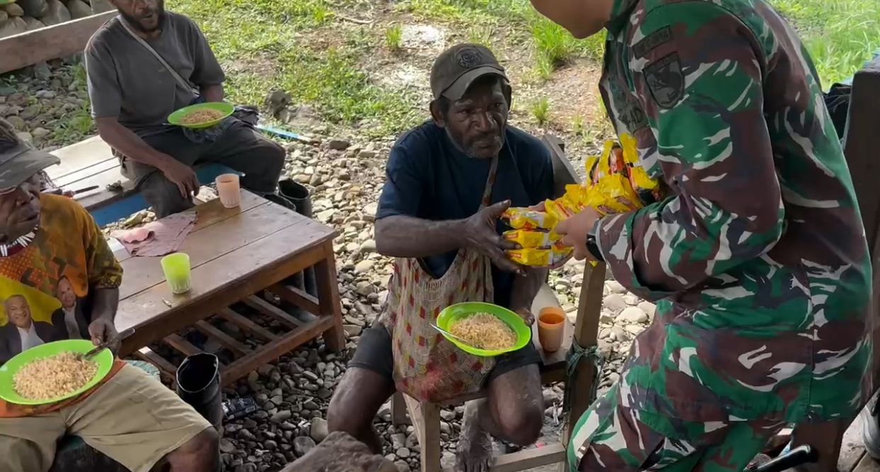 Selal, Pegunungan Bintang, Barometer99.com — Pos Selal Satgas Pamtas RI–PNG Yonif 751/Vira Jaya Sakti (VJS) di bawah Koops Swasembada membuka layanan pengobatan gratis bagi warga sekitar pos, sekaligus berbagi makanan kepada masyarakat yang datang berobat sebagai bentuk simpati dan kepedulian sosial TNI kepada warga yang membutuhkan.(Sabtu,29/11/2025).