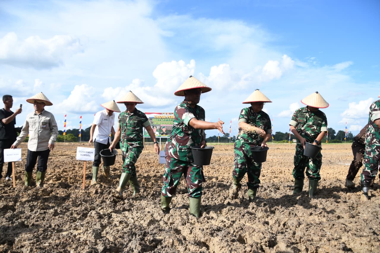 Dalam sambutannya, Pangdam II/Sriwijaya Mayjen TNI Ujang Darwis mengapresiasi pelaksanaan kegiatan Tanam Perdana yang juga digelar secara daring di sejumlah wilayah Korem 044/Gapo seperti Muara Enim, OKU, Ogan Ilir, Lahat, dan Banyuasin. Beberapa daerah turut melakukan penanaman benih menggunakan teknologi drone, sebagai langkah modernisasi pertanian.