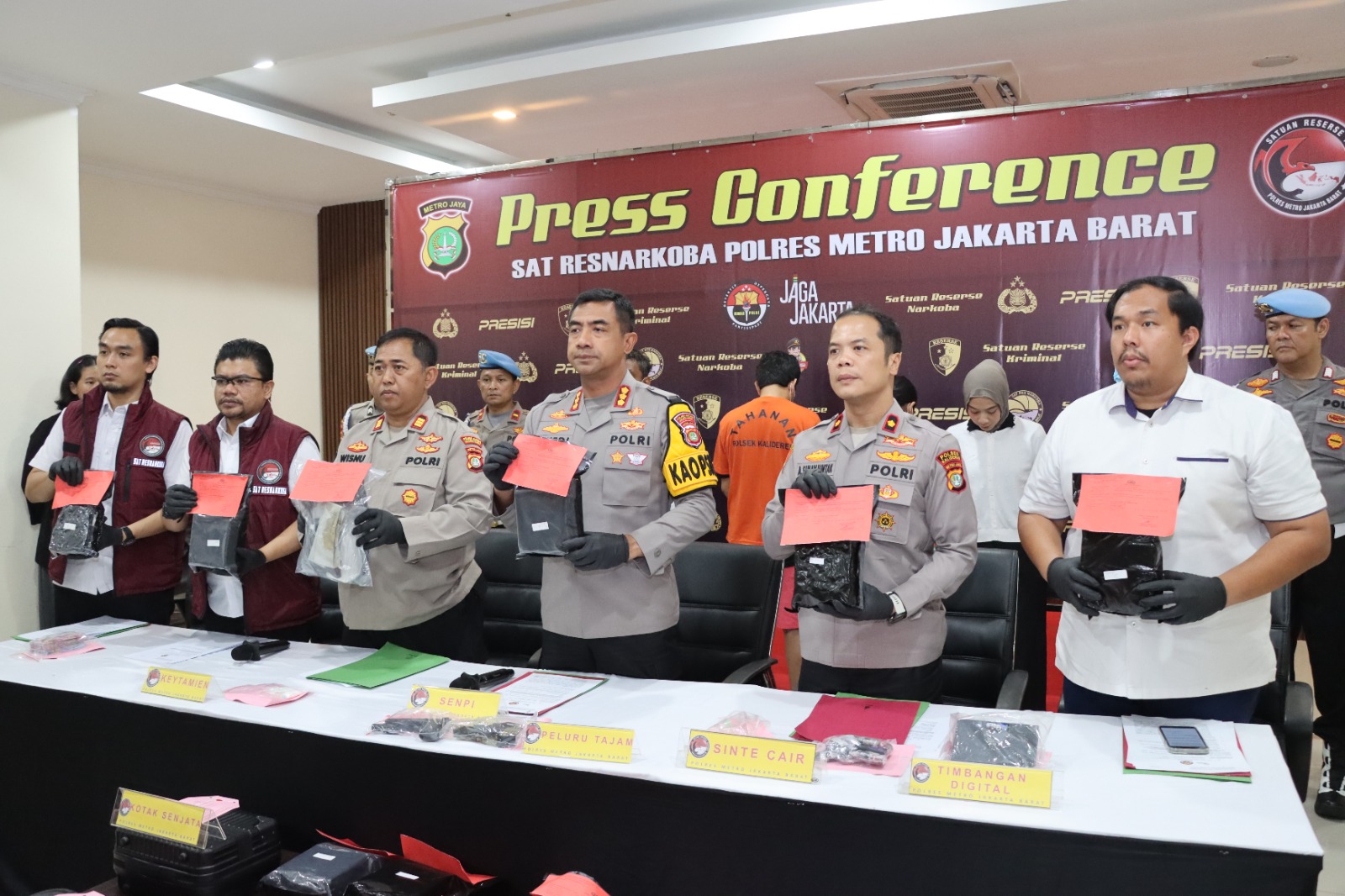 Kapolres Metro Jakarta Barat Kombes pol Twedy Bennyahdi didampingi Kasatres Narkoba Kompol Vernal Armando S dan Kapolsek Kalideres Kompol Arnold Julius Simanjuntak mengatakan, kedua pelaku sejoli ini ditangkap pada Jumat, 21 November 2025 di sebuah rumah kontrakan.
