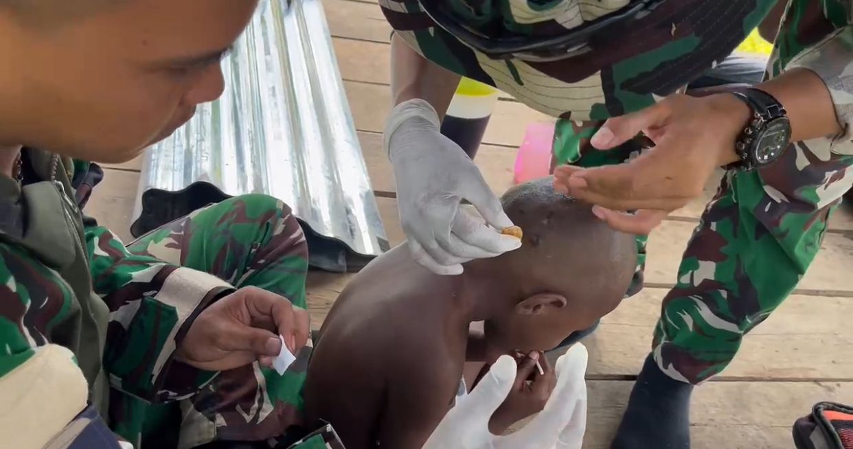 Selal, Pegunungan Bintang — Pos Selal Satgas Pamtas RI–PNG Yonif 751/Vira Jaya Sakti (VJS) melayani pengobatan bagi anak-anak yang mengalami keluhan cacar/ruam dan bisul yang diduga dipicu kebersihan lingkungan yang kurang terjaga. Layanan dibuka gratis untuk warga sekitar pos sebagai wujud kepedulian TNI terhadap kesehatan masyarakat perbatasan.(Selasa,2/11/2025).