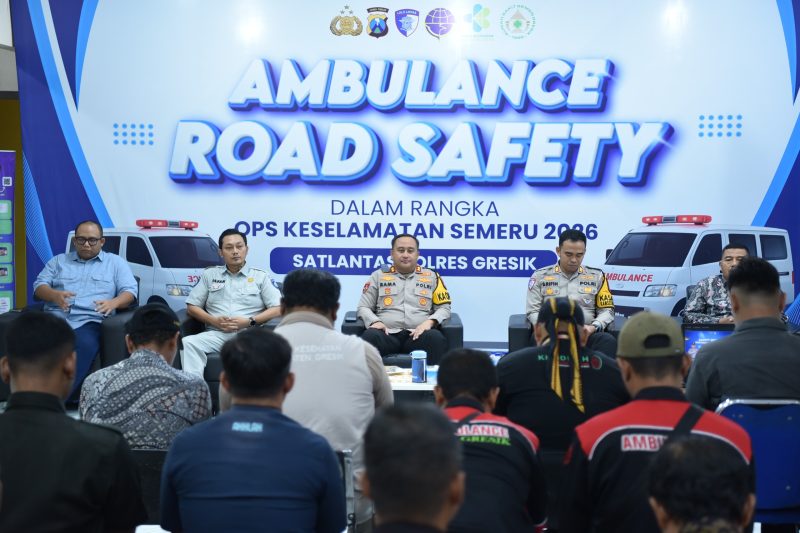 Barometer99.com, Gresik – Satlantas Polres Gresik gelar edukasi Ambulance Road Safety buat tingkatkan keselamatan berkendara dan tekan risiko kecelakaan kendaraan prioritas, Kamis (5/2/2026), di Kantor Satlantas Polres Gresik, Jalan Randuagung, sebagai bagian Operasi Keselamatan Semeru 2026.