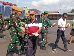 Banyuwangi, Barometer99.com / Kepedulian terhadap masyarakat kembali ditunjukkan jajaran Kodim 0825/Banyuwangi melalui aksi kemanusiaan dengan membagikan air mineral dan makanan kepada para sopir truk serta warga yang terjebak kemacetan di kawasan Pelabuhan PT ASDP Ketapang, Kecamatan Kalipuro, Kabupaten Banyuwangi, Jumat (3/4/2026) pagi.