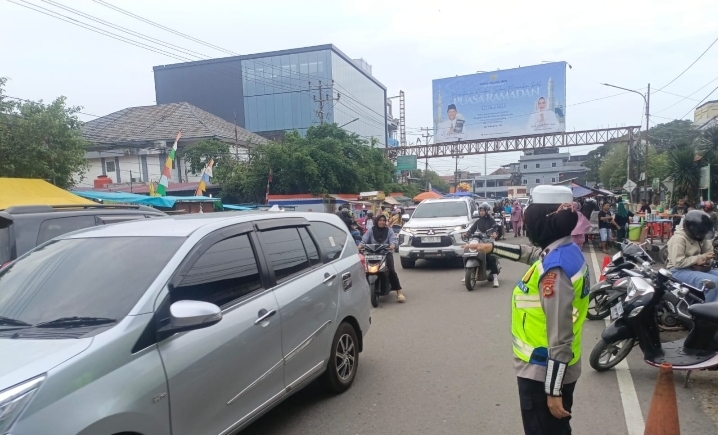 Untuk mengantisipasi terjadinya kemacetan, personel Satuan Lalu Lintas Polres Muara Enim tampak aktif melakukan pengaturan arus lalu lintas di berbagai titik persimpangan yang rawan terjadi kepadatan kendaraan.