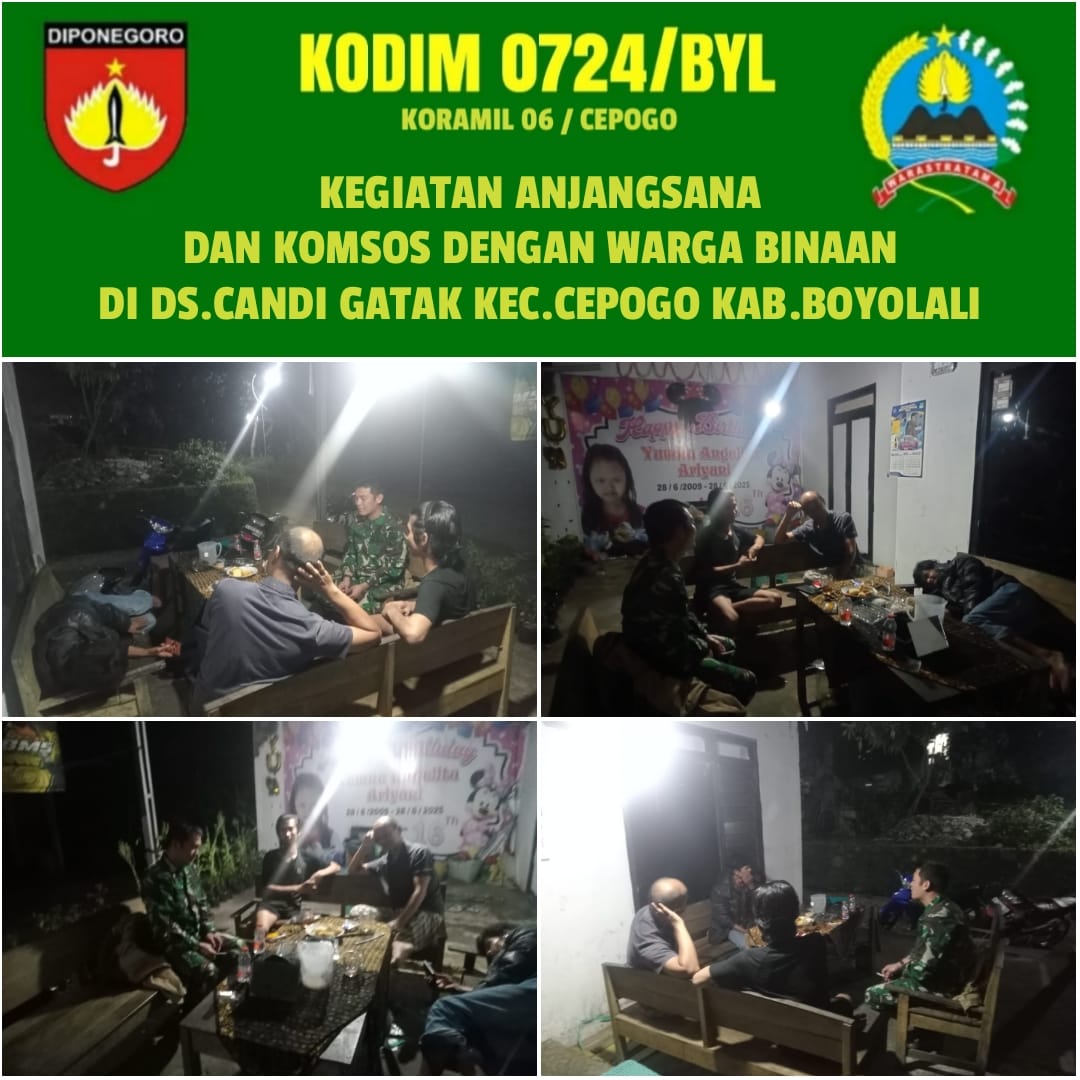 Kegiatan yang berlangsung pada hari Kamis pukul 21.00 hingga 22.30 WIB tersebut dilaksanakan di wilayah Desa Candi Gatak, Kecamatan Cepogo, Kabupaten Boyolali. Dalam kesempatan itu, Serka Aris Mahmud berinteraksi langsung dengan warga, mendengarkan berbagai aspirasi, serta memantau kondisi keamanan lingkungan, (27/02/2026)