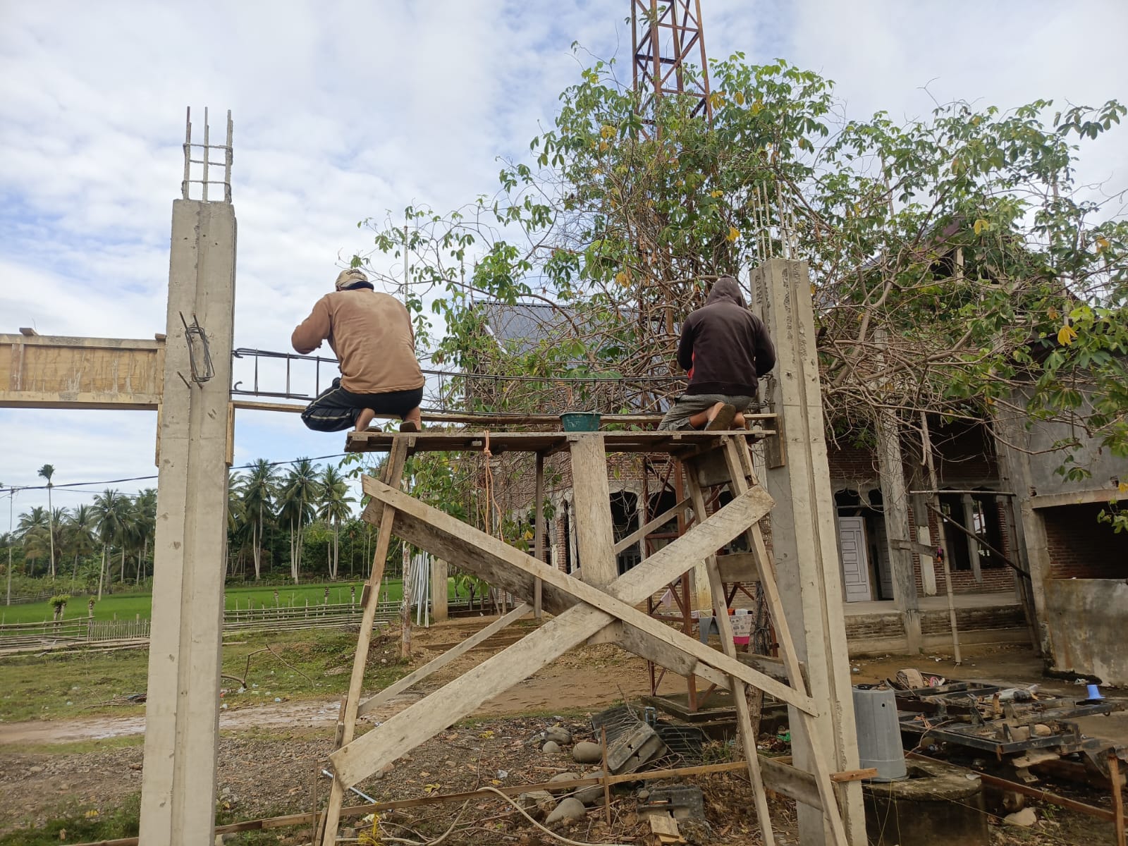 Di lokasi, pekerjaan saat ini difokuskan pada lanjutan pengecoran balok gantung serta pembuatan mal blok gantung. Meski masih tahap awal, pengerjaan dilakukan secara bertahap dan rapi agar hasil bangunan kuat dan bisa dimanfaatkan dalam jangka panjang.