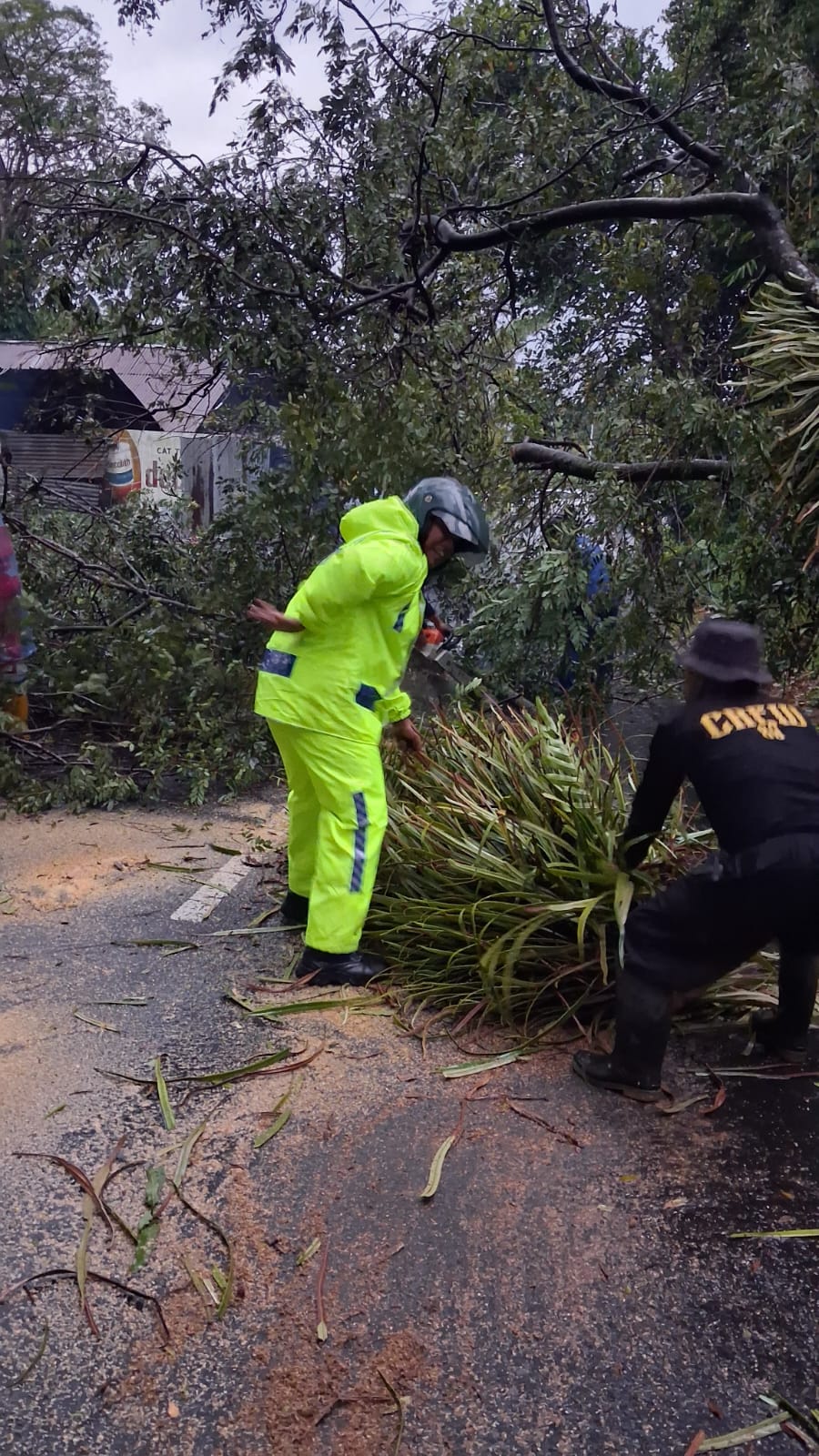 Kondisi cuaca tersebut menyebabkan satu pohon Trembesi berdiameter 30 centimeter yang berada di tepi jalan tidak mampu menahan tekanan angin hingga akhirnya tumbang melintang jalan.Pohon tumbang tersebut menutup jalur dari dua arah Degolan Balong dan menimpa jaringan listrik, telfon, waifi.