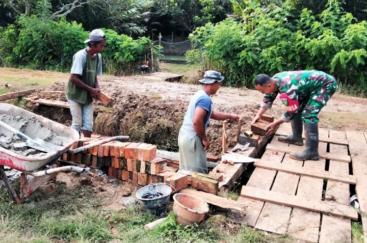 Babinsa Koramil Ulilin Hadir di Tengah Warga, Bantu Pembuatan Gorong-gorong di Kampung Kandrakay