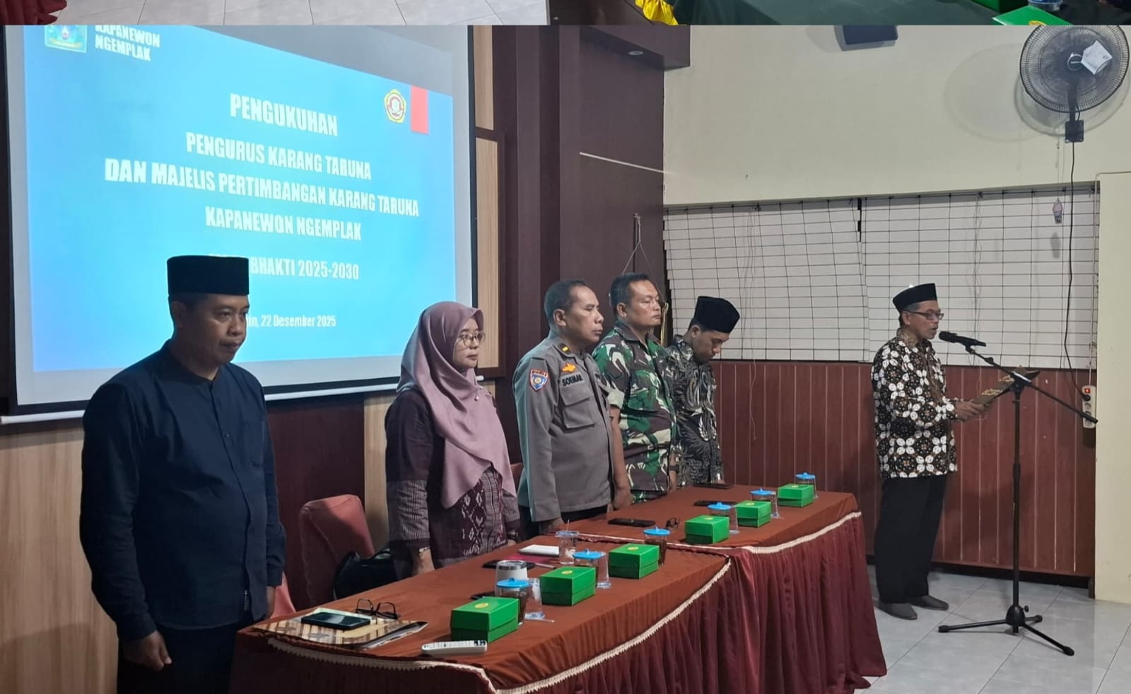 Barometer99-Sleman — Babinsa Widodomartani Kapanewon Ngemplak kodim 0732/Sleman Serda Yudi menghadiri Pengukuhan Pengurus Nasional Karang Taruna Kapanewon Ngemplak masa bakti 2025–2030 di Kapanewon tersebut,Senin (22/12/2025)