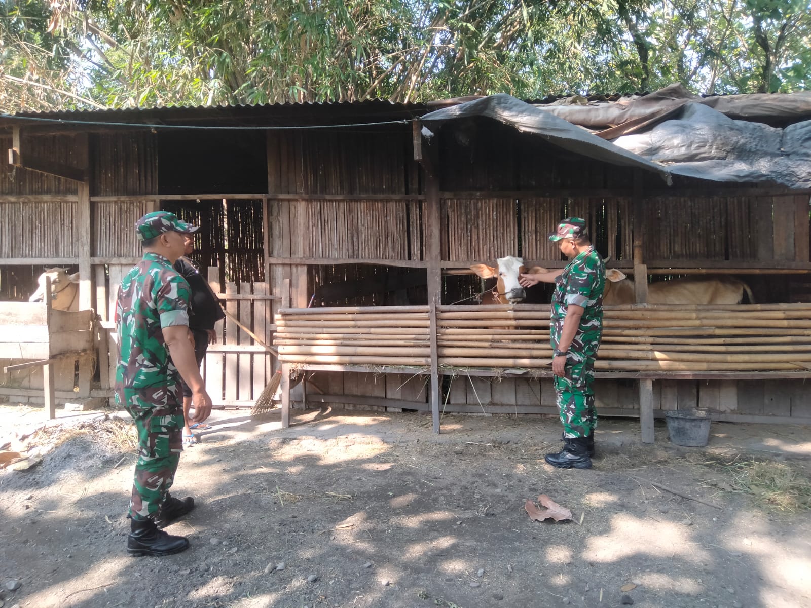Dalam kunjungan tersebut, Serka Bambang memeriksa kondisi kesehatan ternak sapi milik beberapa peternak lokal, antara lain Pak Slamet dan Bu Suparti. Mereka memeriksa berat badan, kondisi kulit, serta pola makan hewan ternak tersebut.