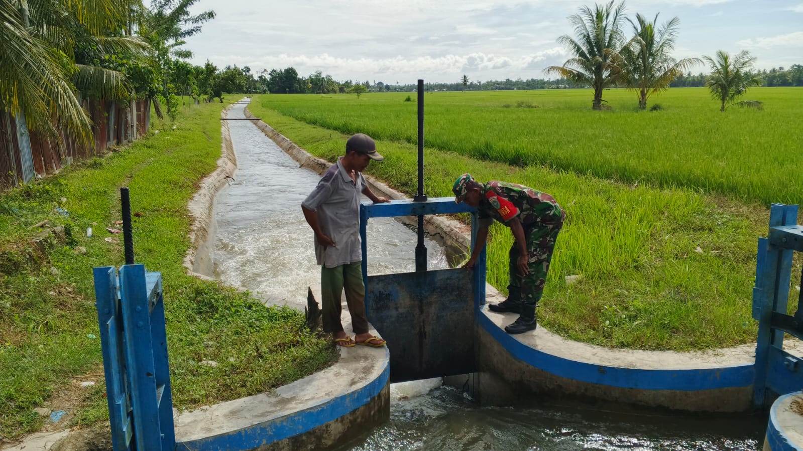 Tak hanya memantau, Sertu Rustam juga mengingatkan pentingnya menjaga kebersihan saluran air. Menurutnya, irigasi yang bersih dan lancar adalah kunci utama keberhasilan musim tanam.