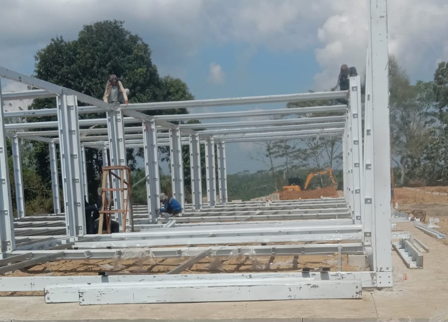 Untuk lokasi pertama, progres pembangunan telah mencapai sekitar 10 persen dari rencana pembangunan 84 unit huntara yang terbagi dalam 7 blok moduler. Saat ini pekerjaan masih difokuskan pada tahap perataan lahan serta pemasangan balok pondasi dan tiang pada 6 blok moduler.