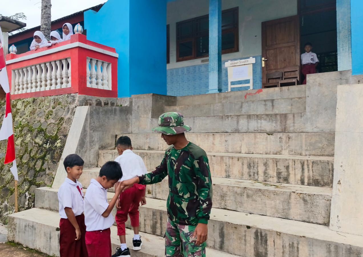 Wonogiri, Barometr99.com – Sebagai wujud kepedulian Satgas TMMD Reguler ke-127 Kodim 0728/Wonogiri dalam meningkatkan semangat dan kerajinan anak-anak Desa Kembang untuk pergi menuntut ilmu di sekolah, Personel Satgas TMMD menjemput dikediamannya masing-masing dan mengantar anak-anak hingga menuju depan gerbang SD Negeri 1 Kembang, Desa Kembang, Kec Jatipurno, Kab Wonogiri, Selasa (24/2/2026).