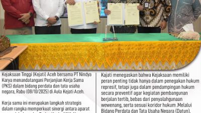 Aceh, Barometer99.com – Kejaksaan Tinggi (Kejati) Aceh bersama PT Nindya…