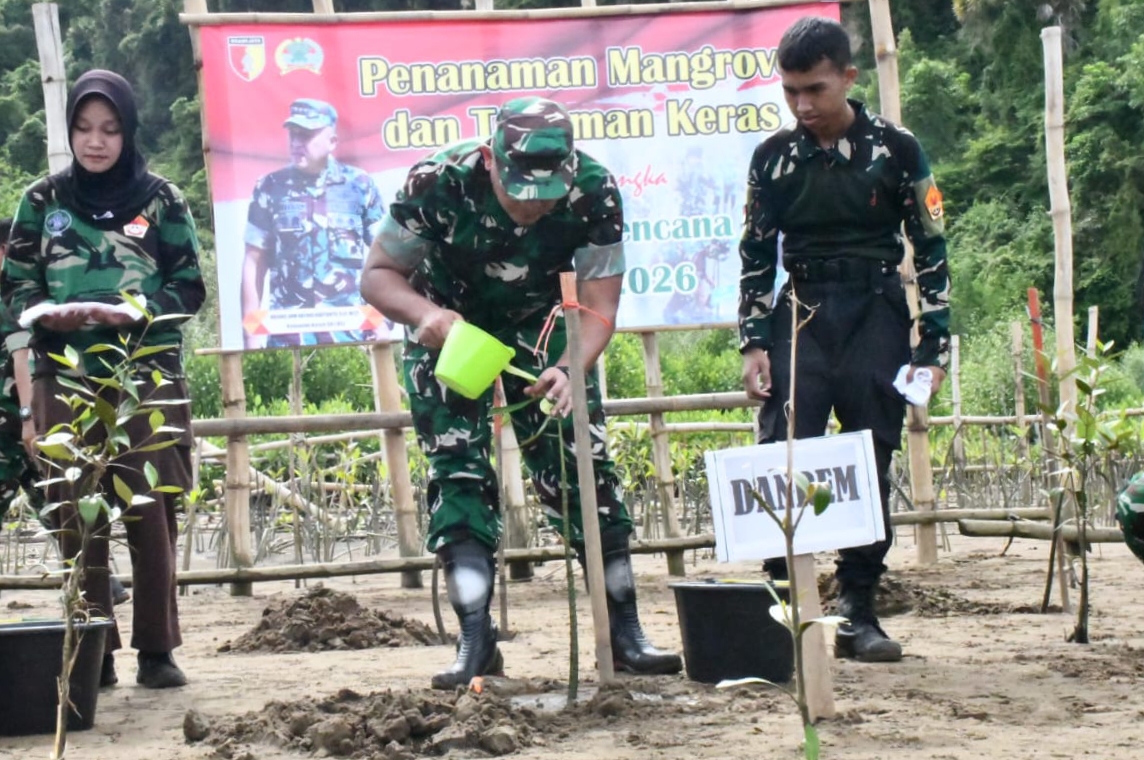 Cegah Erosi, Kodim 0412/LU Bersama Warga Tanam 1000 Pohon di Nyapah Banyu