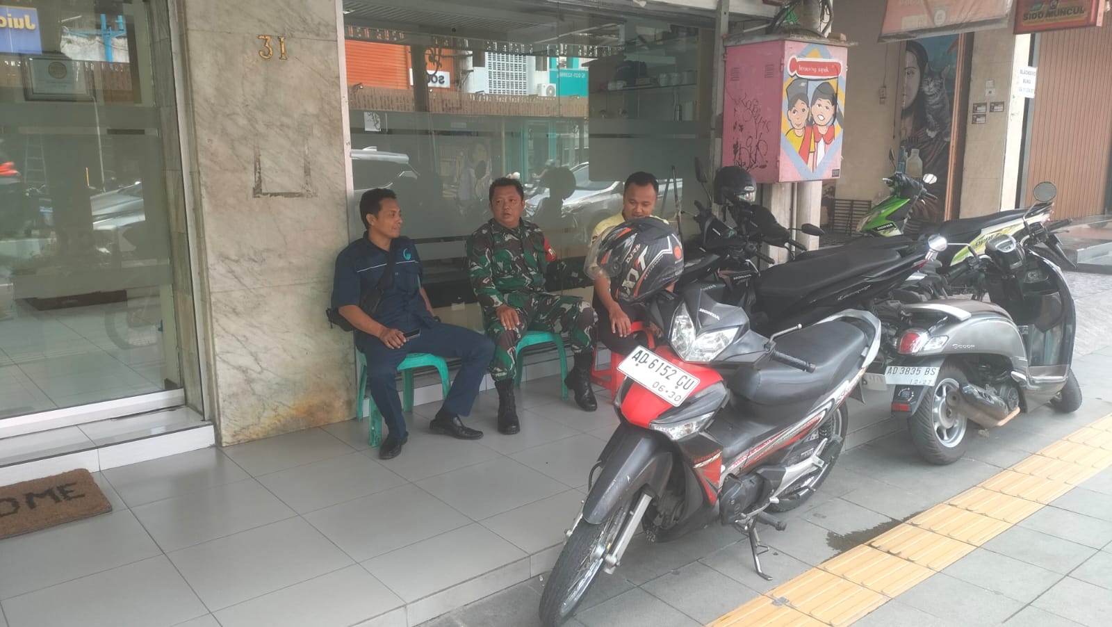Surakarta, Barometer 99.com – Babinsa Kemlayan Koramil 03/Serengan Kodim 0735/Surakarta Serka Priyanto melaksanakan komunikasi sosial (komsos) dengan Sdr. Wahyu Security Bank Indek yang berada di jl. Gatot Subroto  Kelurahan Kemlayan Kecamatan Serengan Kota Surakarta, (20/01/2026)