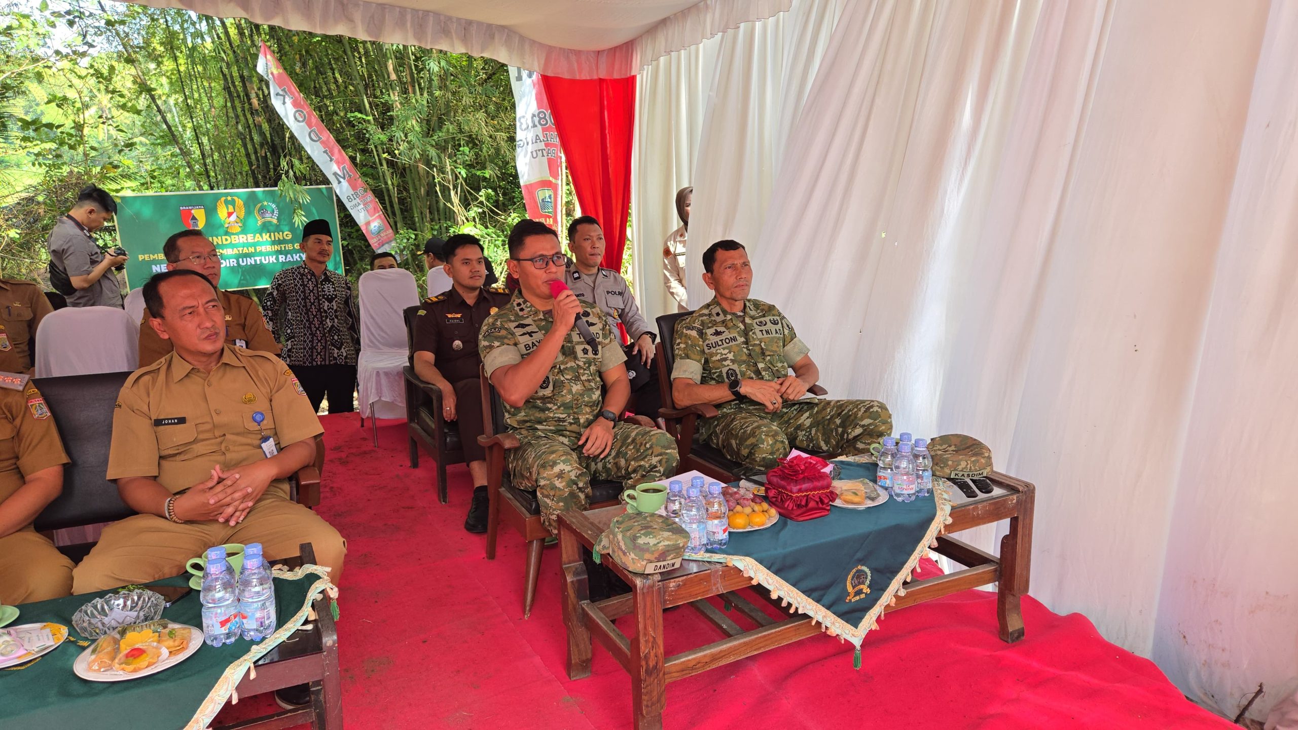 Acara groundbreaking ditandai dengan peletakan batu pertama secara simbolis oleh Dandim bersama unsur Forkopimda dan Forkopimcam. Momen tersebut disambut antusias oleh warga yang hadir, yang turut menyaksikan secara langsung dimulainya pembangunan jembatan yang selama ini menjadi harapan bersama.