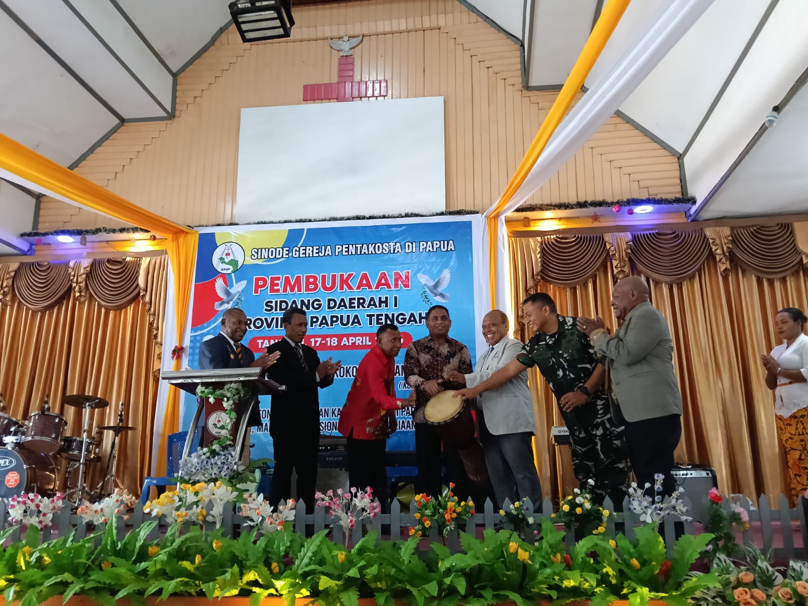 Barometer99.com / Nabire ~ Komandan Kodim (Dandim) 1705/Nabire Letkol Arh Dwi Palwanto Tirtamentari, S.E menghadiri kegiatan Sidang Daerah I Papua Tengah Gereja Pentakosta di Papua (GPDP) yang diselenggarakan oleh Badan Penghubung Sinode Papua Tengah di Gereja Pentakosta Torsina, Jalan Christina Martha Tiahahu, Kelurahan Kalibobo, Distrik Nabire, Kabupaten Nabire, Provinsi Papua Tengah. (17, April 2026)