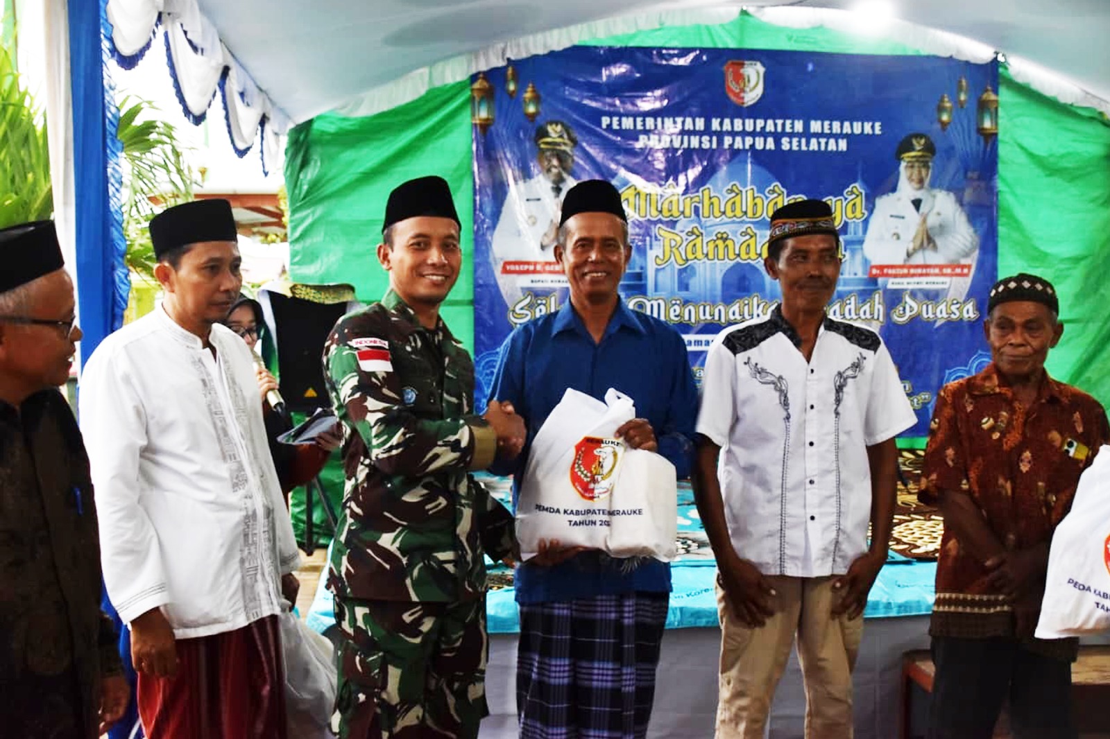 Safari Ramadhan dipimpin oleh Staf Ahli Bidang Perekonomian dan Pembangunan Setda Merauke Beny Malik, S.Pd., M.Pd, dan dihadiri Dandim 1707/Merauke Letkol Czi Dili Eko Setyawan, S.Ak., M.Han, Kepala Kemenag Kabupaten Merauke Herman Wona, S.Pd.K., M.Pd.K, Kepala Kesbangpol Merauke Sukito, S.Sos selaku ketua panitia, Kabag SDM Polres Merauke AKP Sanawiyah Yunita Mahulette, S.I.K., M.H, tokoh agama serta ratusan masyarakat sekitar.