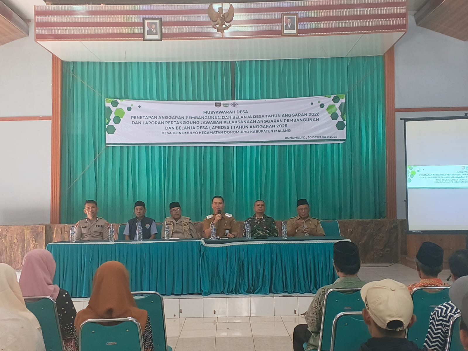 Malang, Barometer99.com – Komandan Rayon Militer (Danramil) 0818/11 Donomulyo, Kapten Infanteri Sunarko, menghadiri Rapat Musyawarah Desa (Musdes) penetapan Anggaran Pendapatan dan Belanja Desa (APBDes) Tahun Anggaran 2026 serta laporan pertanggungjawaban APBDes Tahun Anggaran 2025 yang digelar di Balai Desa Donomulyo, Kecamatan Donomulyo, Kabupaten Malang, Selasa (30/12/2025).