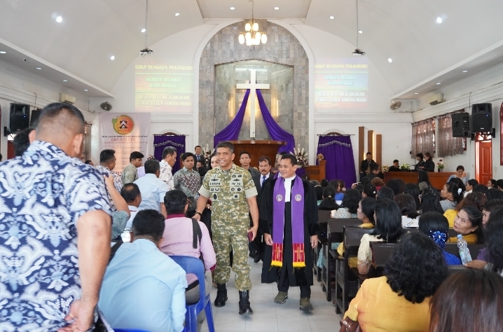 Hal tersebut disampaikannya saat menghadiri ibadah dan kegiatan kebersamaan di GBKP Sektor Pekanbaru, Minggu (22 Februari 2026). Kehadiran Danrem disambut hangat oleh para jemaat dan pengurus gereja dalam suasana penuh kekeluargaan.