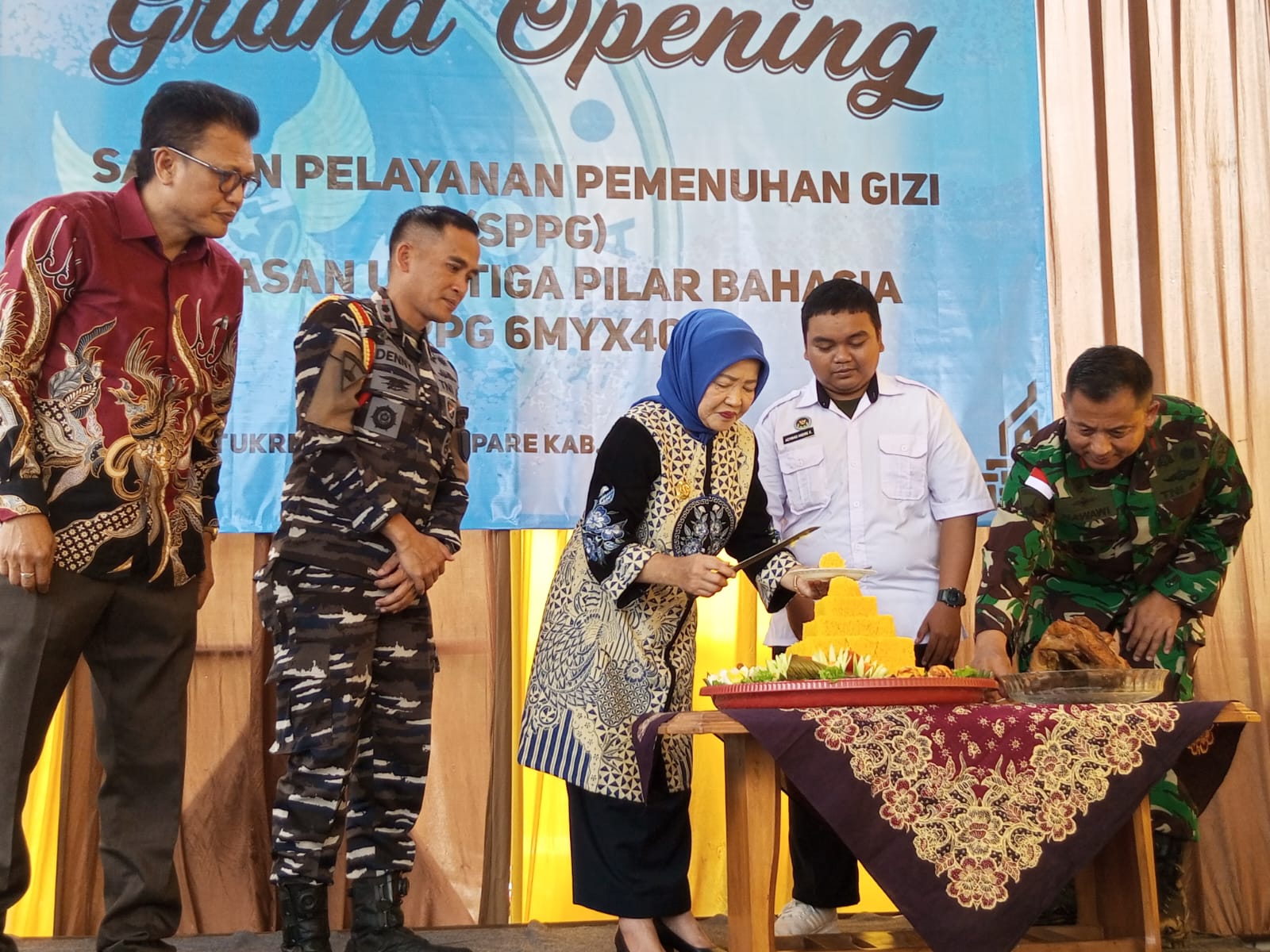 Acara peresmian Dapur SPPG ini dihadiri oleh sejumlah tokoh penting lintas sektor, di antaranya Brigjen TNI (Mar) Nawawi, S.E., M.M. selaku Founder sekaligus Owner Yayasan Umi Tiga Pilar Bahagia, Dra. Hj. Lathifah Shohib selaku Wakil Bupati Malang, Letkol Mar Deny Apnanto Putro, M.Tr.Opsla selaku Danpuslatpur Mar-4 Purboyo, Nanang selaku Ketua Yayasan Umi Tiga Pilar Bahagia, serta unsur Forkopimcam Kalipare seperti AKP Basuki Iriyanto, S.H. (Kapolsek Kalipare), Heru Aji Irawan, S.AP., MAP. (Camat Kalipare), dan Kapten Cke. Bakirin (Danramil 0818/13 Kalipare).