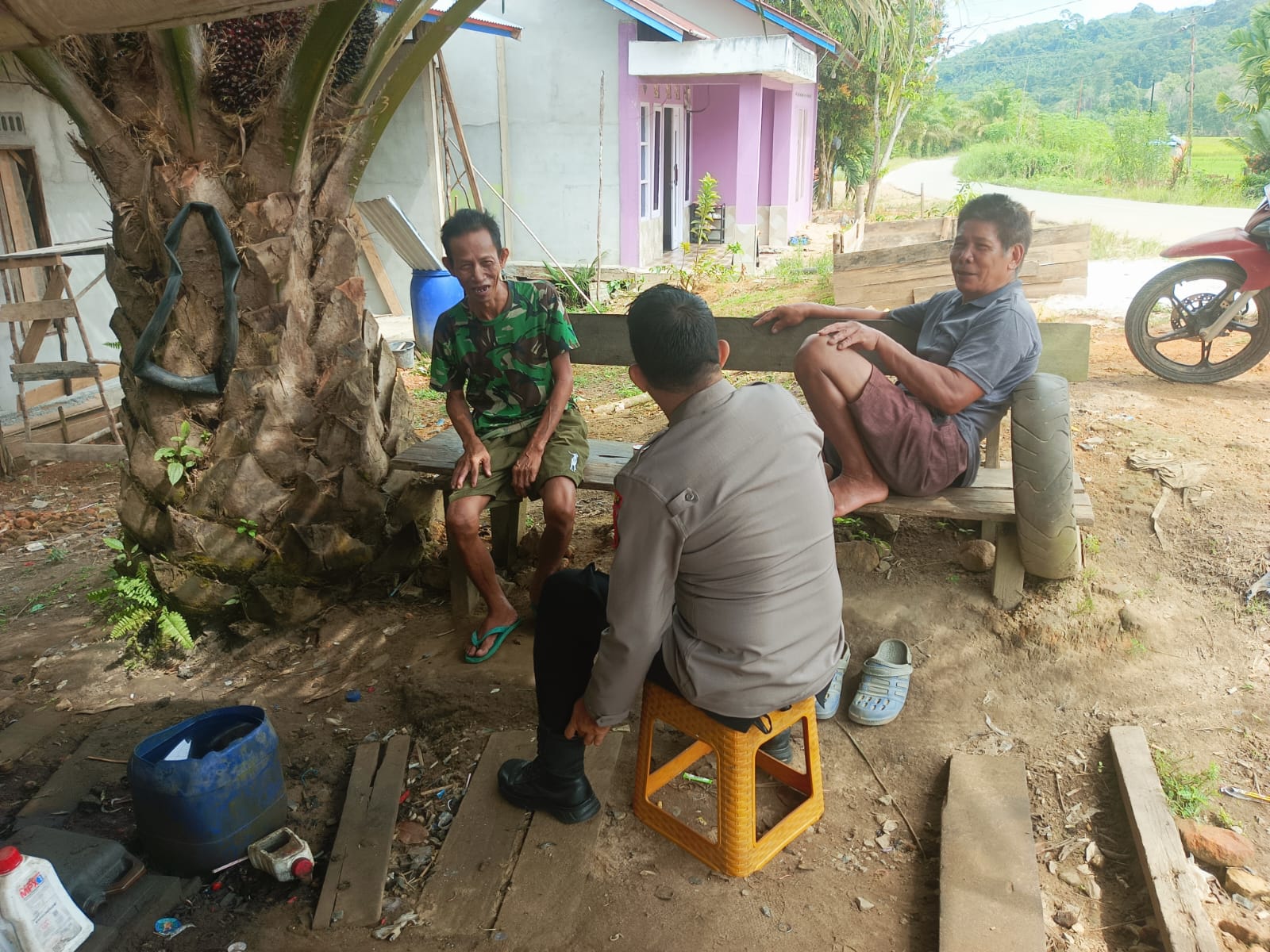 Kegiatan tersebut menjadi momen penuh makna, di mana polisi hadir lebih dekat dengan masyarakat, tidak dengan jarak dan sekat, melainkan melalui dialog santai yang sarat kekeluargaan. Duduk bersama di bawah pohon, suasana terasa cair meski cuaca panas menyelimuti lingkungan sekitar.
