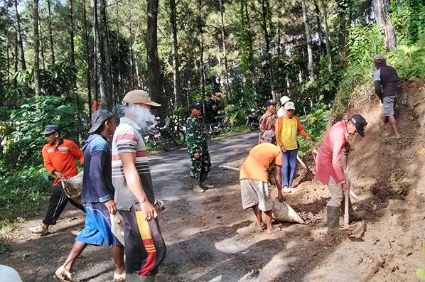“Karya bakti ini kami lakukan bersama warga dengan sasaran pembersihan saluran air dan sisa tanah longsoran. Lokasinya berada di wilayah pegunungan, sehingga saluran air harus benar-benar bersih agar tidak menimbulkan dampak yang lebih besar,” tegas Serma Siswanto.